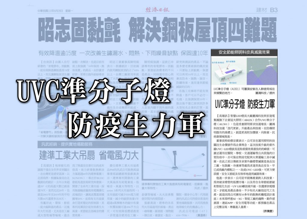 智慧LED燈具大廠麗鴻科技與宏達電集團旗下企業冠大照明(AREX)合作UVC準分子燈(AU301)及採用日本大廠生產UVC-LED除菌燈(MRL36),受惠照明需求快速增長......