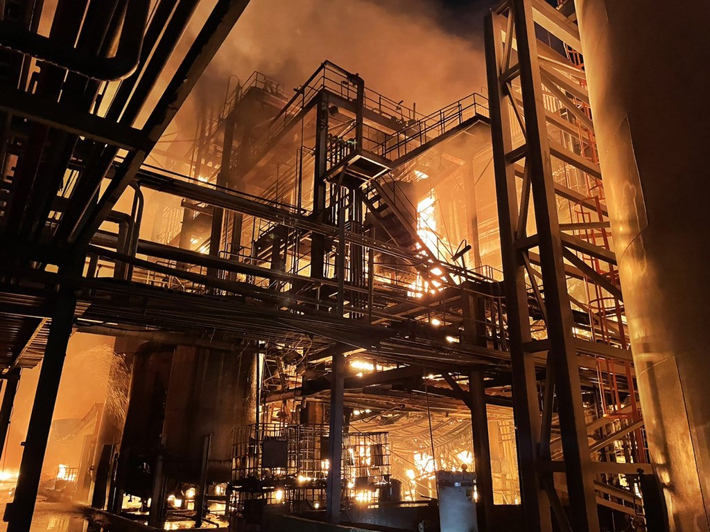 高雄市林園區聯成化工日前大火,高雄市政府今天與經濟部工業局到場體檢。市府勞工局表示,共發現7項重大缺失,依法裁罰新台幣542萬元,肇災現場及30座危險性設備停工處分。